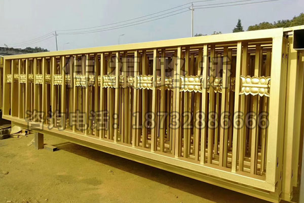 黃金護欄可根據(jù)配上蓮花、蝴蝶、海鷗等花(huā)式做成具有民族特色或地方性標誌的護欄。