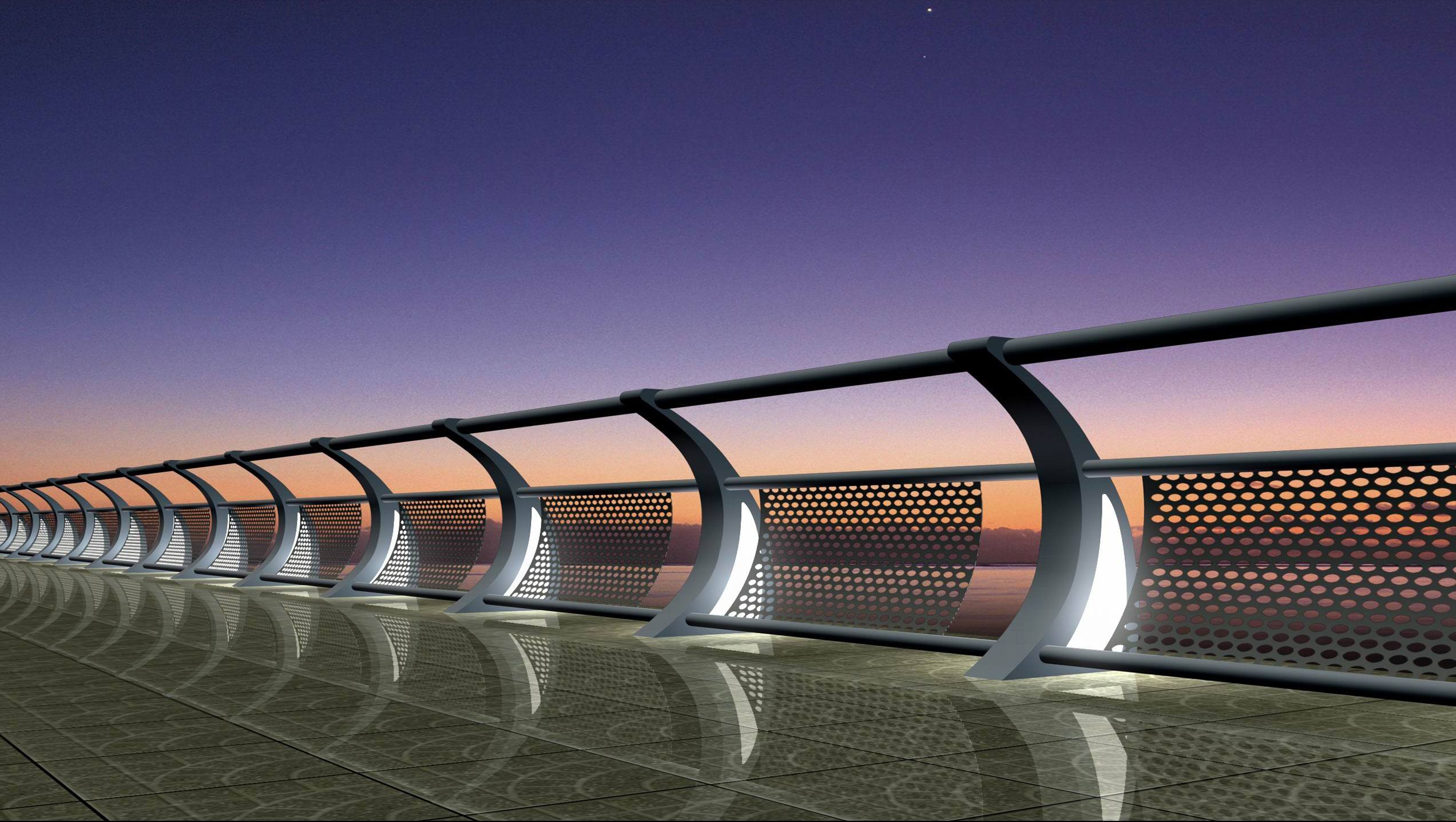 橋(qiáo)梁聲屏障高度不宜超過5.0m,如需超(chāo)過5.0m時可將(jiāng)聲屏障上不(bú)做(zuò)成折型或弧形,端部伸(shēn)向道路或輕軌一側。