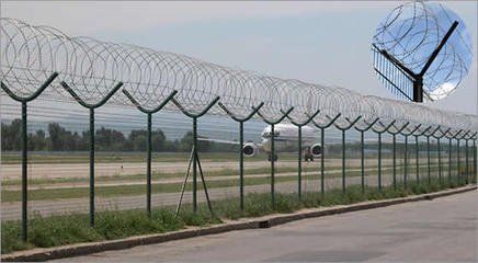 機場護欄網在(zài)行業中又稱作“Y型安全防禦護網(wǎng)”,其組成是由V型(xíng)支架立拄,加強型焊接片網,安全防盜(dào)連接件和熱(rè)鍍鋅刀片刺籠組成,是強度和安全防禦性級別很高的護欄網產品。